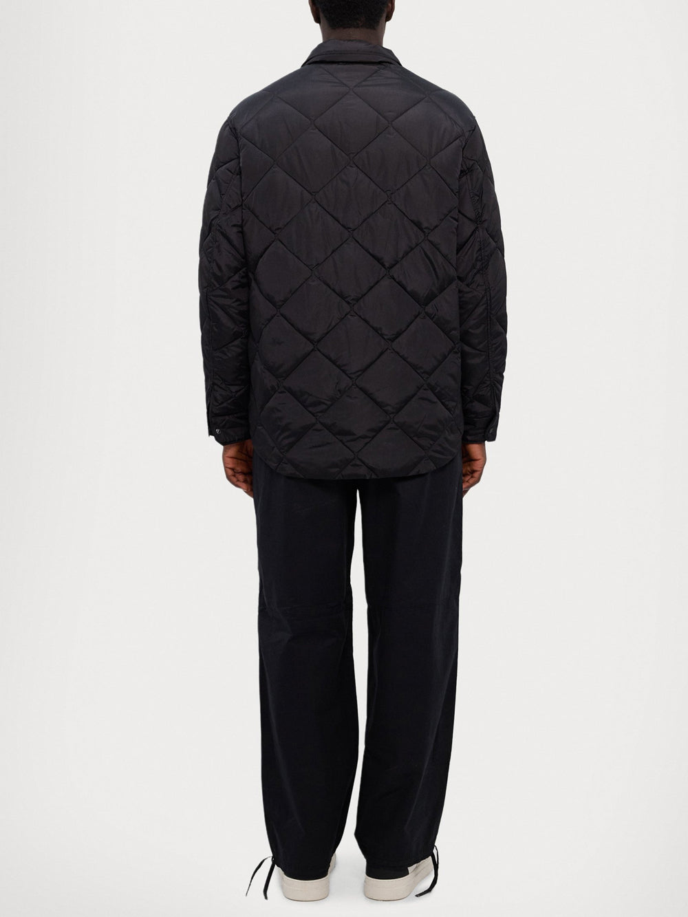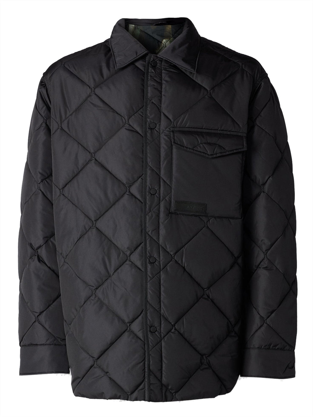 Giacca trapuntata leggermente imbottita in nylon riciclato, chiusura con bottoni automatici, tasca a toppa con patta sul petto con toppa logo, orlo arrotondato e polsini con bottoni automatici..