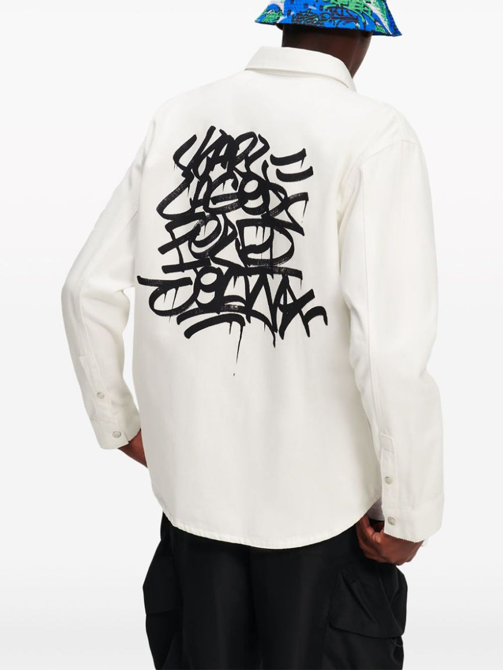 Grafica graffiti KARL LAGERFELD JEANS x CRAPULE2000 sul lato sinistro e sul retro